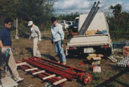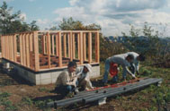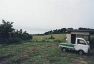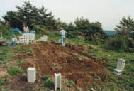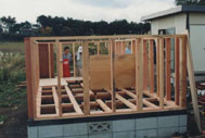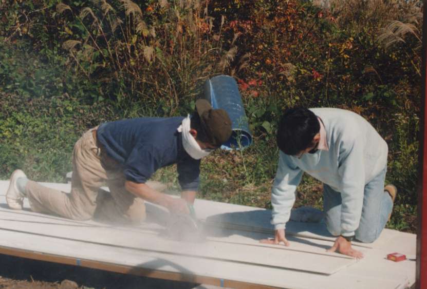 | 1996年9月8日(日)金尾さんとスライディングルーフの位置決めをし、杭を打ちました | ||