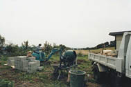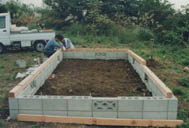| 9月28日(土)基礎のブロックは専門の業者に依頼しました。ブロックは幅15cm。2段積みです | ||