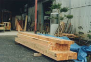 10月13日(日)横山さんの木工工場で製作を開始しました。角材の山です。 |