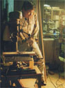 | 金尾さんはレールを水平に固定する左官仕事にかかりました。 横山さんが側壁用のパネルを切断しています。 | |||