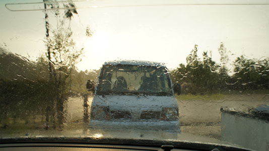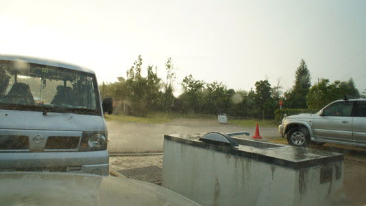 ![]() 人間と望遠鏡は、とりあえず車の中に避難して、雨雲が通り過ぎるのを待つ |
