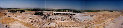 13日はバスでペルセポリス遺跡に行った.紀元前何百年という時代によくもこんなに巨大で精巧な石の建造物を作ったものだと感心した .遺跡のパノラマ写真をを撮るために山の斜面にある王の墓まで出宮先生のあとをフウフウいいながら登った. 67の55ミリレンズで3枚に収まるのを確認して左から1枚2枚と撮り,3枚目のシャッター を押したらミラーが上がりっぱなしになってカメラが動かなくなった.電池切れである. ぞっとした.皆既中によくぞ電池切れにならなかったものだ. キュロス王の墓というのも見た.諸国の宗教や文化を尊重して統治したこの王に敬意を払い, アレキサンダー大王はその墓を荒らさなかったそうである.ところがインドに遠征して 帰ってみると何者かによって盗掘されていた.