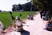 翌日の日食当日は午前中も市内観光が予定されており, 現地での準備時間が少ないので,前夜のうちにカメラにフィルムを入れたりビデオの時刻を合わせたり細かい撮影 手順書を書いたりしてできるだけの準備をした。撮影現場はイスファハン郊外の田んぼの畦道だった。 素晴らしい並木があり, 木陰は快適だった。しかし, 日陰で太陽を撮影することはできない。気温は37度。 乾燥していて出た汗はほとんどすぐ乾くのだが,それでも長ズボンの中は汗が流れた。