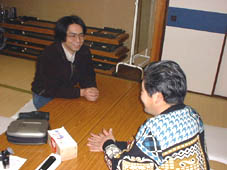 ![]() 福山市瀬戸町から酒井要さんに参加していただきました。佐藤会長と話しています。 |