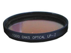 O-IIIフィルター:ラインフィルター このタイプにはAstronomik、Lumicon、米OrionのOIII、Thousand Oaks OpticalのLP3などがあります。このタイプを使うとナローバンドフィルターに比べてより微妙な構造が見えるようになります。ナローバンドフィルターでぼんやりした雲のようだったバラ星雲の微妙な濃淡も分かり、網状星雲も寄り浮き上がって見えるようになります。また、惑星状星雲も闇の中に浮き上がるので小さくて見つけにくいものでも比較的楽に見つけられるようになります。散開星団M46の中にある惑星状星雲 NGC248もこのフィルターでよく見えるようになりました。ただし、Hβの励起光を多く含むと思われる散光星雲については逆に見えなくなってしまうものもあります。M42の北側にある鳥のくちばしのような形をしたM43はこのフィルターを使うと消えてしまいます。 写真はThousand Oaks OpticalのLP3 |
