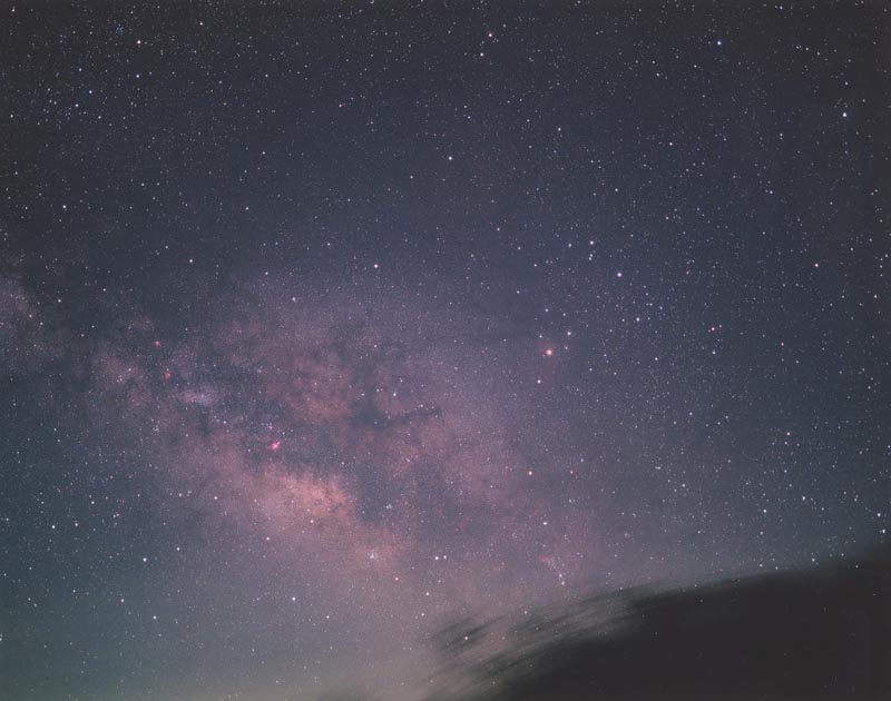 道後山で撮った天の川とさそり座の画像です。 露なし快適で、まずまず満足のいく出来です。 撮影記録: 2005年5月4日 1時10分より20分露光 SMCペンタックス67 55mmF4絞り開放 フジカラープロビア400F 撮影地:道後山