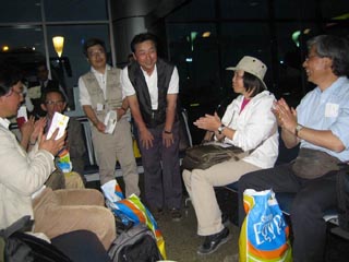 ![]() カイロ空港にて、広電観光の社長さんが挨拶しているところ。 |