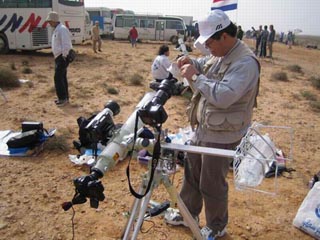 望遠鏡にビデオにスチルと凄い撮影機材です。 自作のバランスウエイトもうまくできているようです。 |