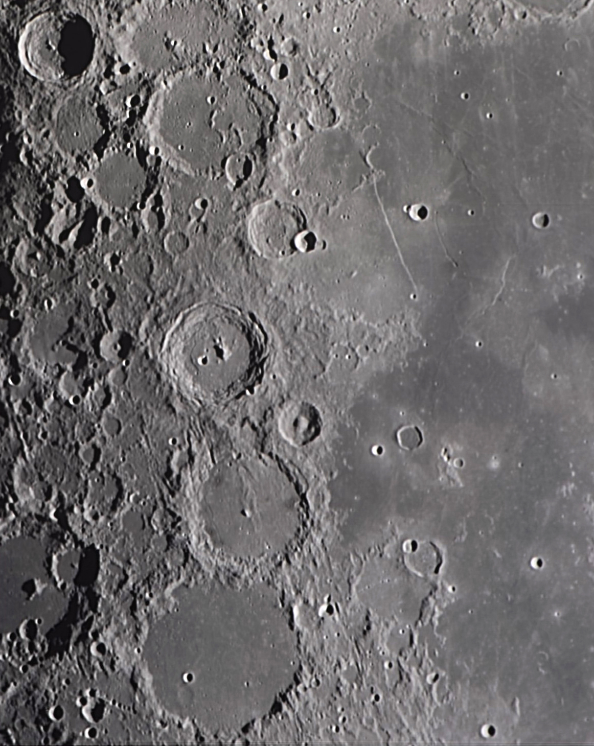 今朝の月面ですが拡大率を変えて撮像しました。アルキメデスの小クレーターは