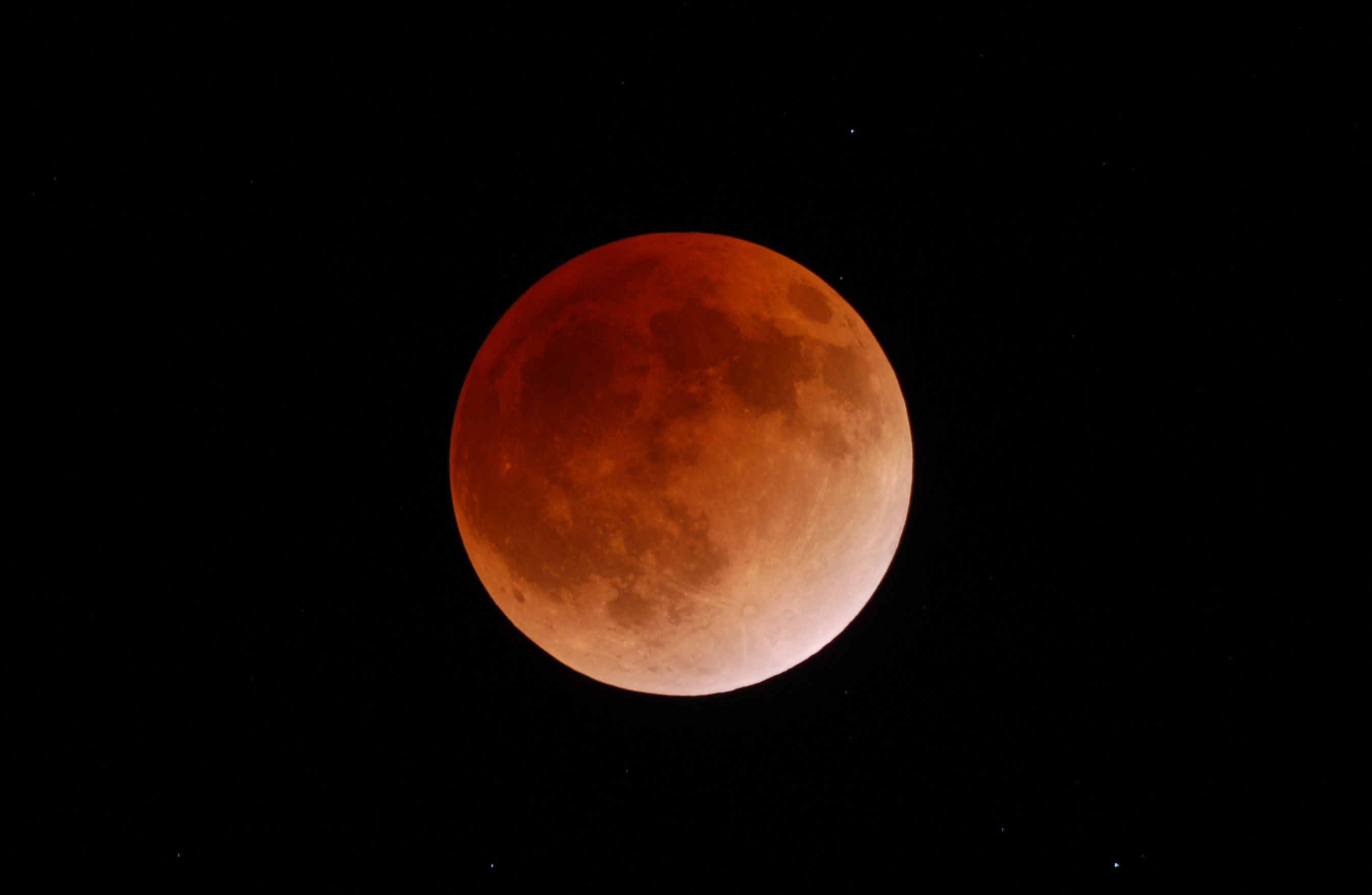 つる仙人です。 本当に美しい皆既月食でしたね。 透明度がよく高度が高い皆既の月を望遠鏡で見た時の美しさ はなんとも言えませんでした。 2011年12月10日 23時35分 1.6秒露出 ビクセンR200SSの直焦点撮影 ニコンD50 ISO400