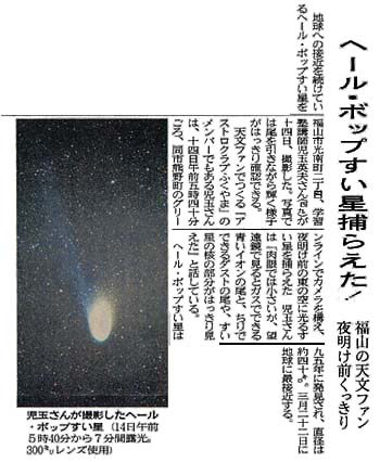 先日、北部図書館の早川さんから「三月末、ヘール・ボップ彗星を見せてください」と、いう電話が有った。