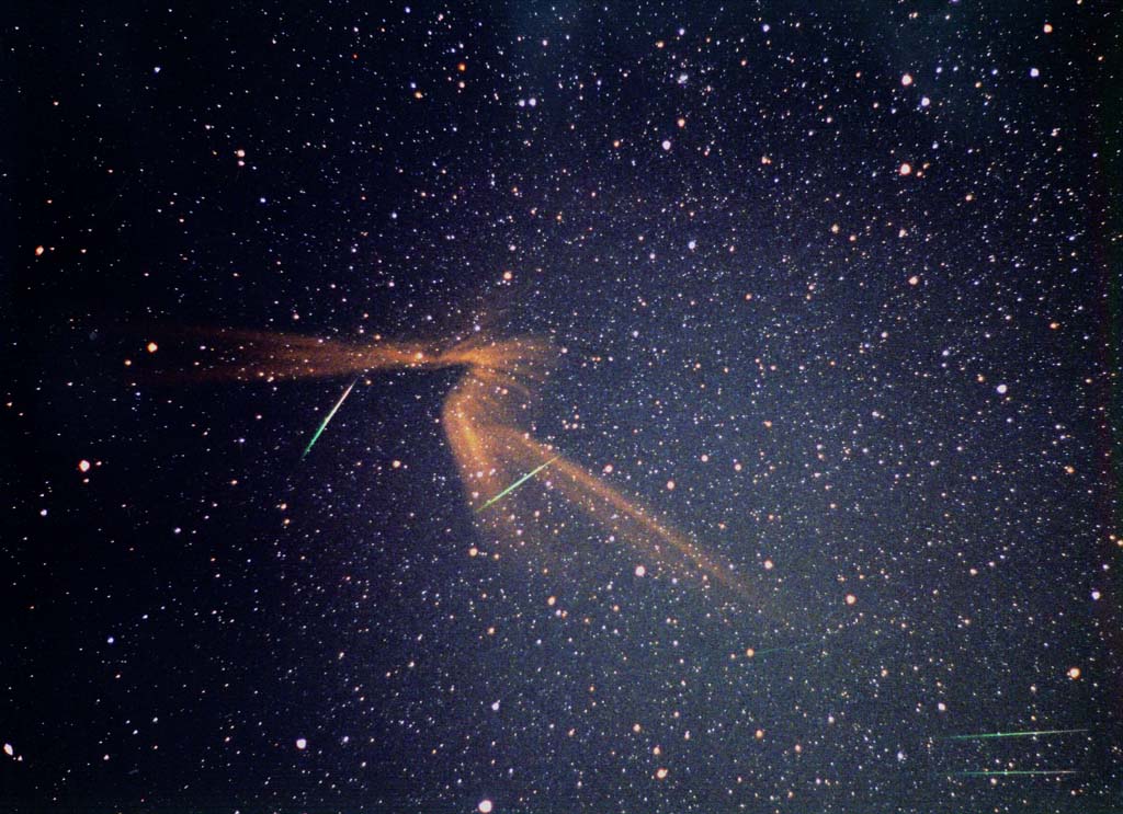 | (4)流星痕。 画面をクリックすると大きくなります ペンタックス50ミリF2.0開放。2時42分から47分まで5分間露出 |