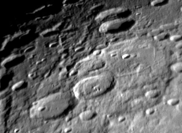 Janssen ジャンセン(古い崩れかけたクレーターで中が複雑になっている) ![]() |
