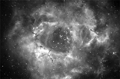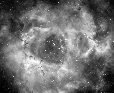 撮影データ:バラ星雲をHαフィルタ-で撮ってみました。 ε160+ST8E(NABG)10分*2枚です。 画像の中に黒いゴミのようなものが写り込んでいるのですが、原因がわかりません。