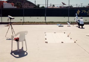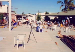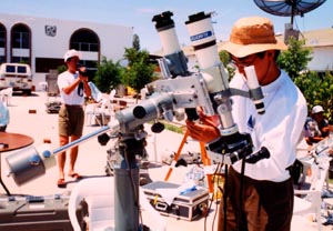 足元には、皆既日食中のスタンドライト 双眼鏡にソーラーフィルターを付けた物 傘。などを準備して臨みました。