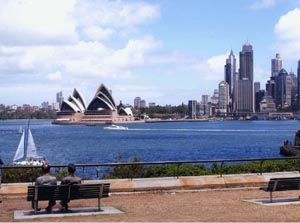 朝シドニーへ着き市内観光。250m高さのシドニータワーの展望台より市内を望む。夕方シドニー発アデレードへ着きホテルへ。