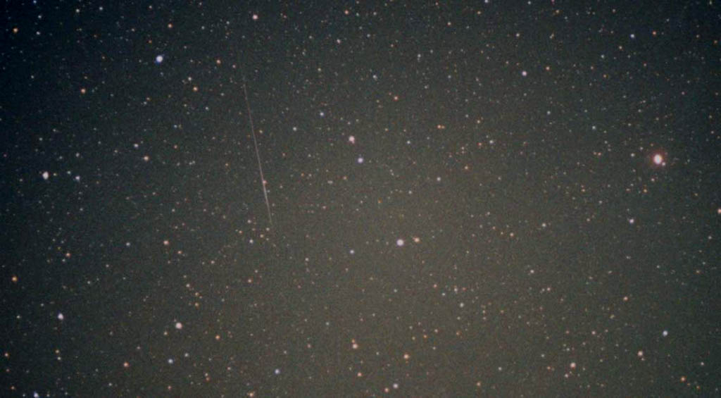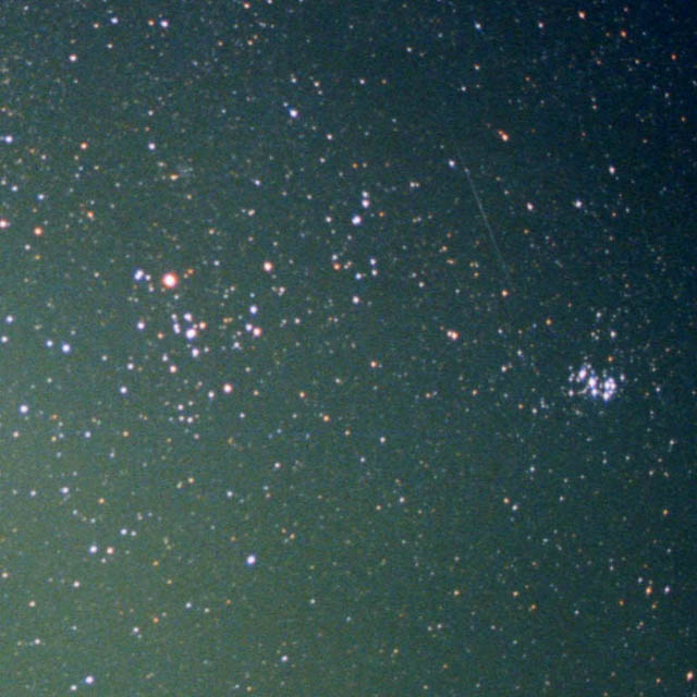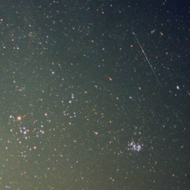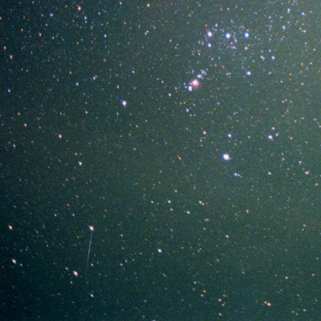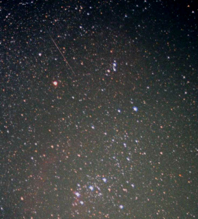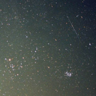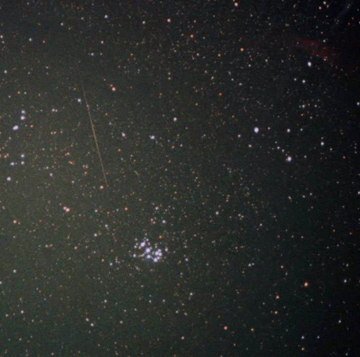 スバル付近の流星 キャノンFTb, 50mm, F1.8開放 (児玉撮影のものと同一の流星です) |