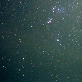 | オリオン座付近の流星 ペンタックスSuperA, 50mm, F1.4開放 |