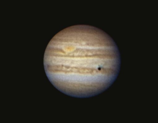 5月27日の木星 久しぶりに木星を撮像してみましたら小さくなって右側が大分欠けています! 佐藤 昌三 2004年5月27日21時16分(90秒) 25cm反射(f1880mm)+タカハシPJ-20mm+ToUcam Registax V2.0 .1021Frames Stack.1/25S.