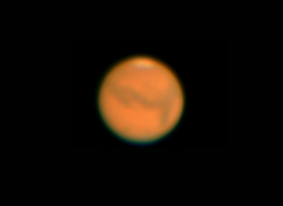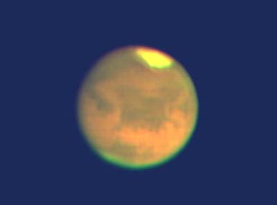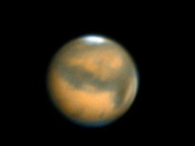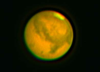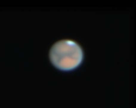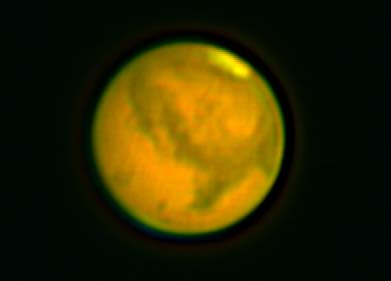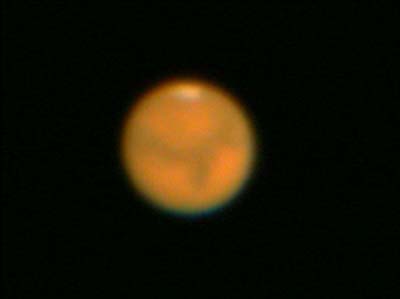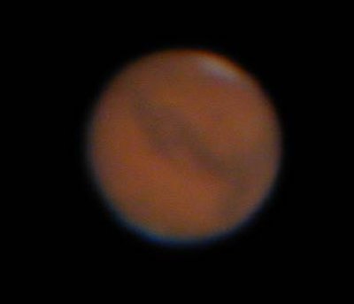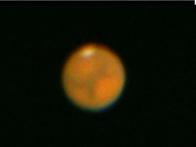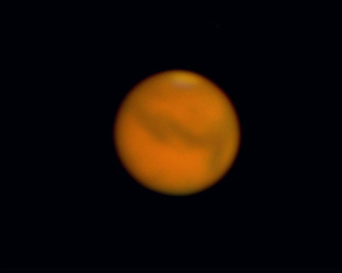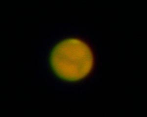 | 2003年8月19日 藤井律男 火星をOr7mmで撮影、1コマ、軽い画像処理。 まだ、Toucamは使いこなせません、昔のオーソドックスなスタイルで撮影しています RegiStax2 にてjpg画像を2枚処理した画像。 すこし、滑らかになっています再度、処理しなおしました |