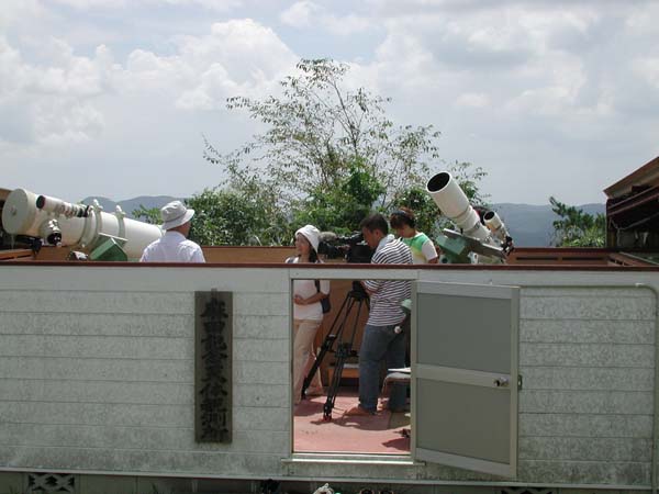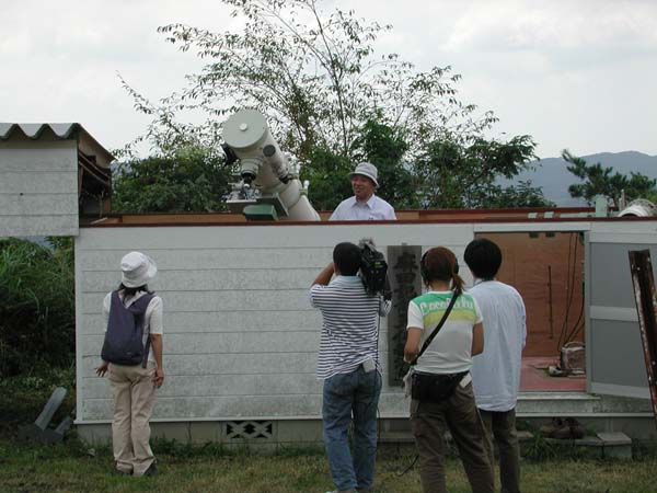 | 火星大接近フィーバーで、緑町公園での観望会に引き続き、NHK地元番組「お好みワイド広島」で5分間放送があり、 その取材に、早朝の我々天文クラブ所有の麻田記念天体観測所で、ロケが行われました。 僅か5分間の放送のためにしては取材の力の入れ方には恐れ入りました。 NHKでは5分の放送でも30分番組が出来るように取材するように教えられているそうです。 それにしても快晴無風、おまけに朝の大雲海と大山の遠望と、絵に書いたような展開で取材大成功で一安心です。 参加者は 金尾さん父娘、小川さん、藤田さんと職場の同僚、児玉、宇宙少年団備後ローズスター分団の田代かのんちゃんと |