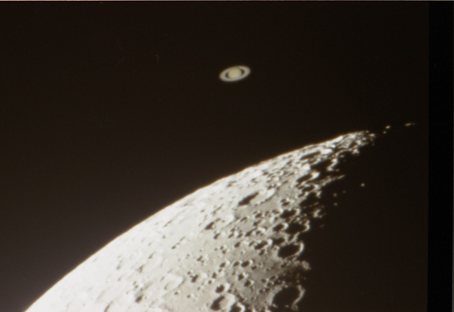この現象は、東北以西では土星食となり、 月面に土星が隠されたが この地方は 土星食とはならず、月面をかすめて 通り過ぎました。 |
