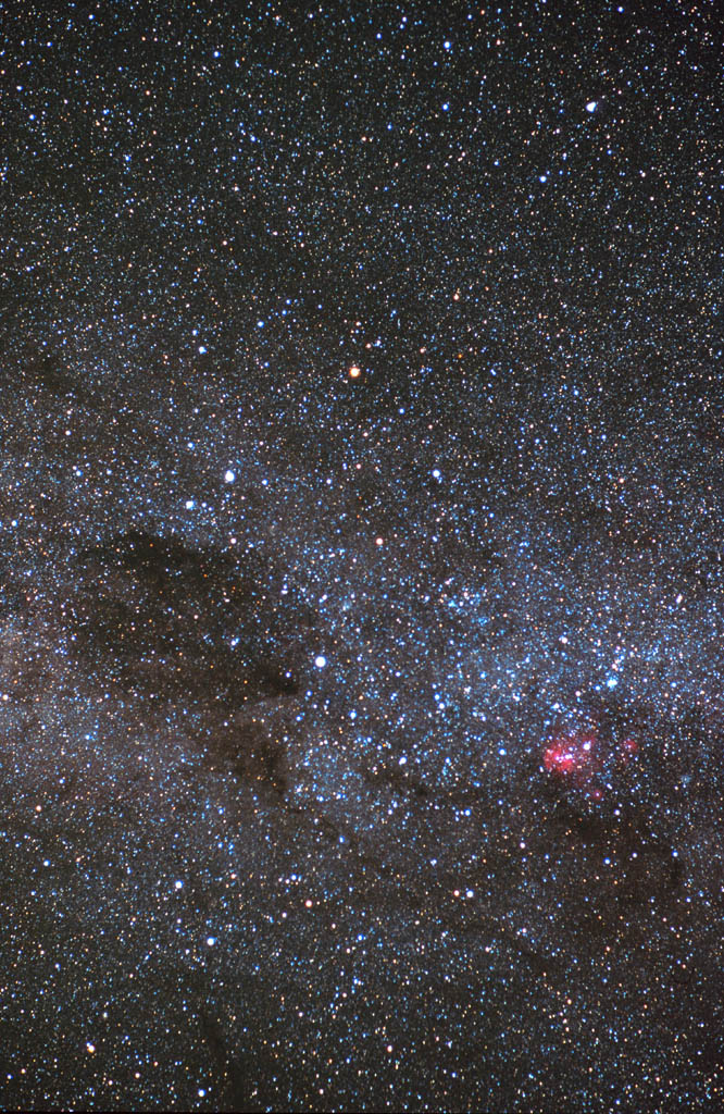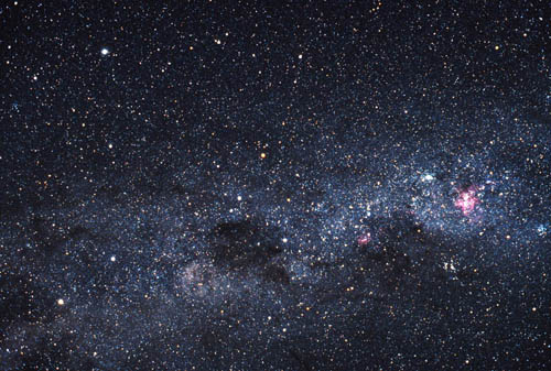 真ん中に南十字星。その左下の暗黒帯がコールサック(石炭袋)です。