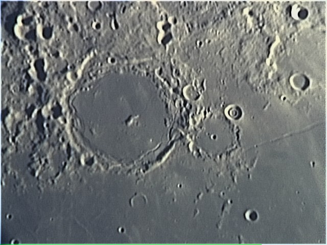 綺麗な2重クラーター 佐藤昌三 2003年10月18日5時55分〜55分25秒。 25cm反射+ PENTAX 24mm. +ToUcam. Registax V2.0 . 270Frames Stack. 露出1/33S.