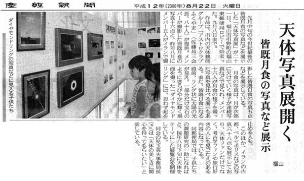 8月21日(月)から9月8日(金)まで 福山東郵便局(広島県福山市引野町) ロビーで、アストロクラブふくやまの天体写真展が始まりました。
