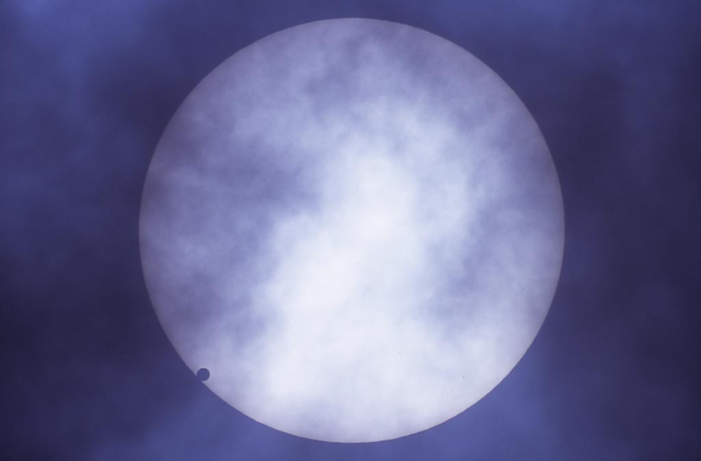 当日は午前中は雨。 しかし、金星の日面経過が始まる午後2時頃には、雲が薄くなり、ノーフィルターで撮影できました。 撮影機材はタカハシのFC-76に2倍のエクステンダーと1.6倍のバリエクステンダーを 付けて拡大し、ペンタックスのMZ-3にフジのベルビア100Fを入れて撮影しました。 雲が濃い時はフィルター無しで、雲が薄い時はND400+ND8のフィルターを付けて撮影。