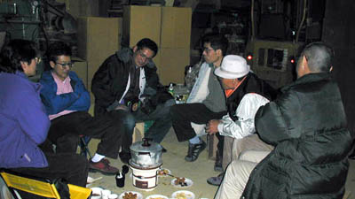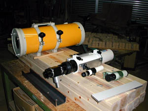 アストロクラブの秘密工場では深夜に次々と新兵器が製造されています。次は40pオー バーのドブソニアンか? 夢のような一夜は過ぎ、午前4時解散。みんな大満足で帰路につきました。 |