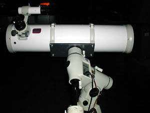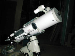 MT160反射望遠鏡を載せ、水平方向に向け て遠くの明かりで動作チェック。 光軸も先日池田さんのところでピッタリ合 わせたので、バッチリOKでした。 |