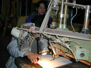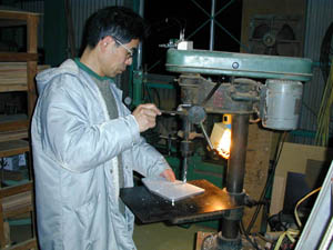 横山さんがポンチで穴の位置を決めてい ます。何ができるのでしょう? ボーリングで穴を空け、 撮影システムでした。後ろからながめても、前から眺めてもかっこいい! |