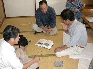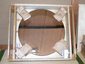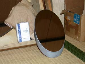 | 今回の例会も、盛りだくさんでした 写真は清水先生の持ち込まれた50センチの鏡と、巨大な斜鏡 横山さんと佐藤会長と金尾さんで 英語版の望遠鏡製作本を真ん中に、どうやってドブソニアンに仕上げるか、相談中。 排水管用の型枠を使ってはどうかと、意見が出る。 |