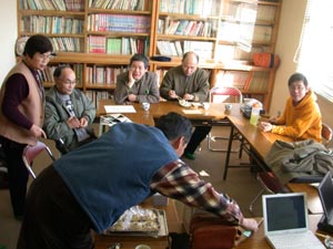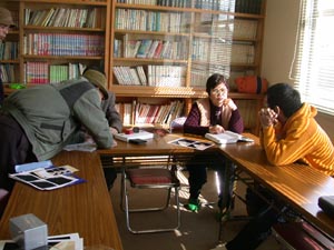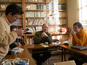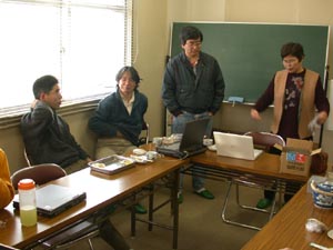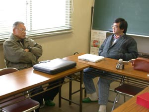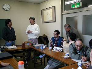 外は時折みぞれの降る天気でしたが、 図書室の中は熱気でむんむんです。 80歳で現役のお医者さんの出宮さん。昨年のアフリカ日食に続いて今年も海外遠征を計画中のようです。 中谷さんは高校天文部連絡会の世話をされ、昨年のしし座流星群観測は大成功でした。 |