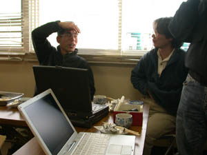 横山さんが冷却CCDで撮る銀河はみんなが楽しみにしています。 熊原さん。入会してまだ日が浅いのに、惑星写真の素晴らしい作品をものにしています。 |