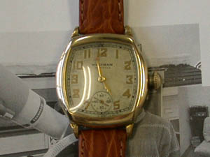 アメリカのウオルサム・リバーサイドウオッチ。1934年製です。(68年前) マニアの方々はリバーサイドと言う名前の時計を探しておられる人が多くて 当時ウオルサム社には2〜3ヶ所、工場があってその中にRIVERSIDEと言う工場があったらしく、その工場で製造された時計は高級品多かったと言う隠れた逸話があります。 |