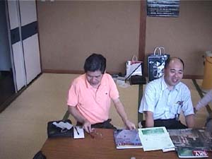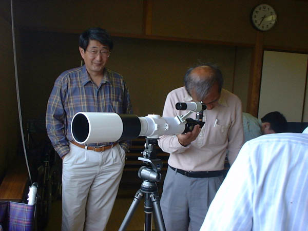 百島の校長先生になった今岡さん。五藤光学の8センチED屈折とかスカイグラフといった往年の名機をぜひ見せてください。 新婚ほやほやの松本和久さん。奥さんは福山楽友協会の演奏会が近いので、バイオリンの練習が忙しく、残念ながらお目にかかれませんでした |