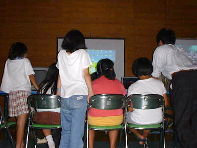 アストロクラブのホームページの月食特集を打ち出したものも展示されました。また、アストロクラブのホームページを打ち出したファイルもありました。(日本語版と英語版) 井関天体観測所所長の高橋寛氏所蔵の天文図書500冊も展示されました。本屋や図書館では見られない実に充実したコレクションです。こんな本に囲まれて暮らせば実に幸せだろうと思います。 コンピューターは子供たちが夜を徹して使っていました。プロジェクター2台の大画面で見るパソコン画面は綺麗で迫力があります。 |
