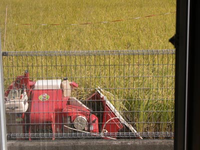 常連の金尾さんが稲刈りで欠席と言う事でしたが、 山手公民館の隣の田圃も、稲刈りの真っ最中。コンバインの音でしばし会話も大声になりがち。 帰る頃には、すっかり田圃は丸裸。 |