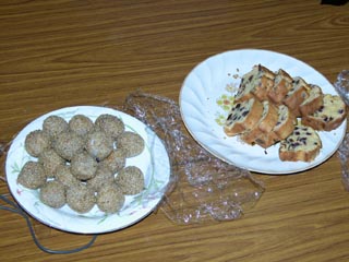 今日のおやつは ムラサキいものおまんじゅうと手造りケーキ。 例会終了時にはほとんど食い尽くしました。 本人からのウンチク・・・ ごま団子は、紫芋の餡を白玉粉と浮粉の皮でつつみ胡麻を また、ケーキはバター・砂糖・小麦粉の生地にドライフルーツと紫芋を入れたパウンドケーキです。なお、紫芋を使ったレシピはまだまだ研究中ですので今後もご期待ください |