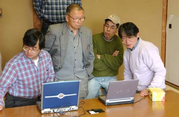 | Registaxには日本語マニュアルがないので、私たちで日本語マニュアルを!と言った意見もあったのですが、ここにあるよと、松本博久さん所属の月惑星研究会のホームページから取ったプリントを中谷さんに見せて頂くが、どうなんだろうか? 2003/9/9 日本語マニュアル完成しました===>>>こちら | |