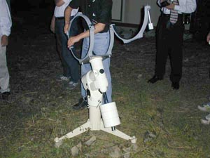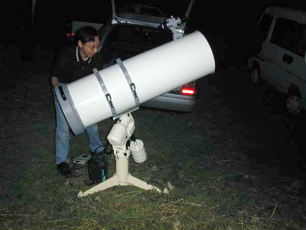 ![]() 鏡筒重量は27キロ。一人でもどうにか載せられます |
