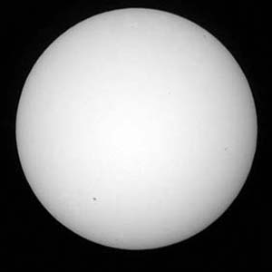 高橋さんの15センチ屈折望遠鏡で太陽を見ました。小さな黒点が点在していまし |