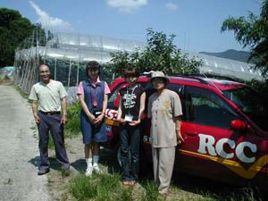 ラジオカーの前で高橋さんの奥さんも入って記念写真です。高橋さん夫妻はこの番組 収録のために、草刈をし、2つのドームもピカピカに磨き上げられました。 |
