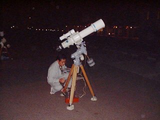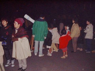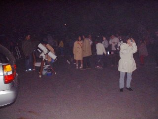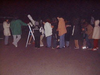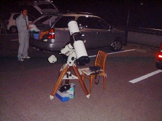 | 金尾さんをはじめとして、熊原さん、後藤さん、谷本さんと私の望遠鏡で100人以上の相手に月、火星、木星、土星、スバルなど見 せてきました。私は今回は赤道儀だったので、ゆっくり見せてあげることが出来て、父兄、子供ともに結構喜んでくれたようでした |