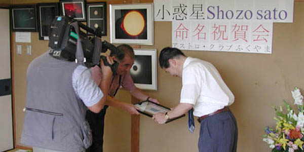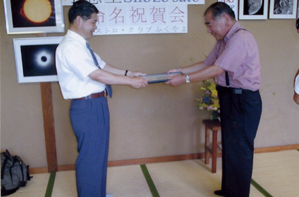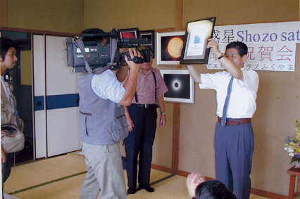 こちらは、NHKのカメラを向けられて 授与式を演出中。 望遠鏡の一つくらい用意しておくべき メンバーからShozosatoは地球に落ちて 佐藤会長・・・・ |