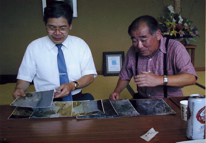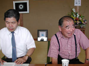 | アフリカ皆既日食の思い出を語る、出宮先生と小川さん。偶然にしてもよく会えたねぇ 真ん中。NHK記者に説明をしています | ||