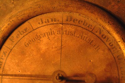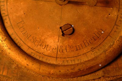 文字盤ですが、外周は左方向にJan.Febr.Marz.Apri.M......Deebr.と、1月から12月までの月。 ドイツのショット社製と書いている文字盤。