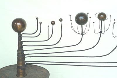 左端が太陽で、水星、金星、地球、火星 大きくなって木星 輪っぱのある土星、天王星、冥王星。